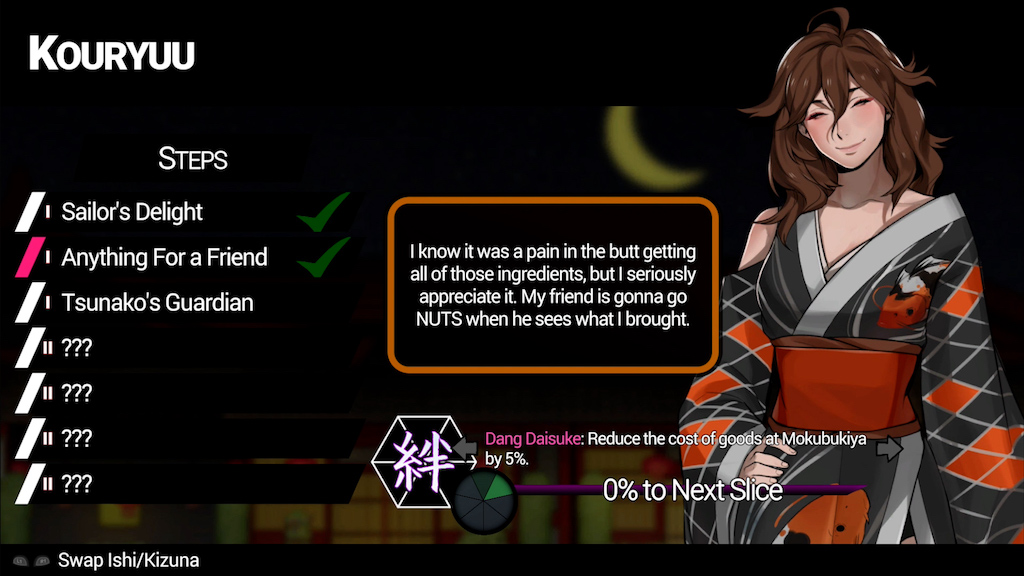 However, learning Japanese is entirely optional. For those more interested in the adventure, Shujinkou delivers a rich JRPG experience. Players can immerse themselves in hundreds of skills, items, deep forging, cooking, fishing, quests, achievements, records to break, and minigames.